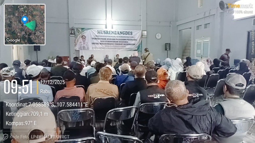 Kegiatan-Kegiatan yang sedang dilaksanakan pada hari Rabu, 17 Desember 2025 antara lain Musyawarah Perencanaan Pembangunan Desa (Musrenbangdes) dan Kegiatan Bimbingan Teknis Peningkatan Kapasitas Ketua RT dan RW.